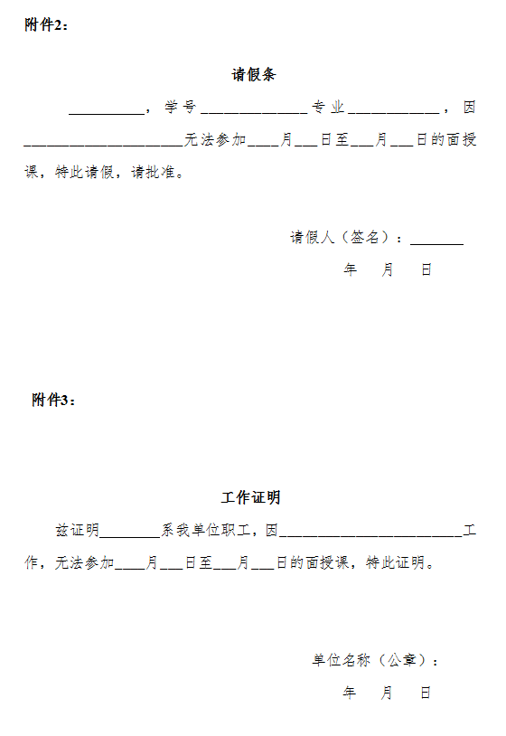 3.学生应根据通知按时上下课,完成签到;本次面授原则上不允许请假,确因个人原因无法参加面授,严格履行请假手续(详见附件2、3);遵守课堂纪律、爱护公共物品;不得迟到早退、大声喧哗、随意走动、上课吸烟;请带好笔、笔记本等文具用品,做好学习笔记;面授课期间,食宿自理,如身体不适,请及时就医。