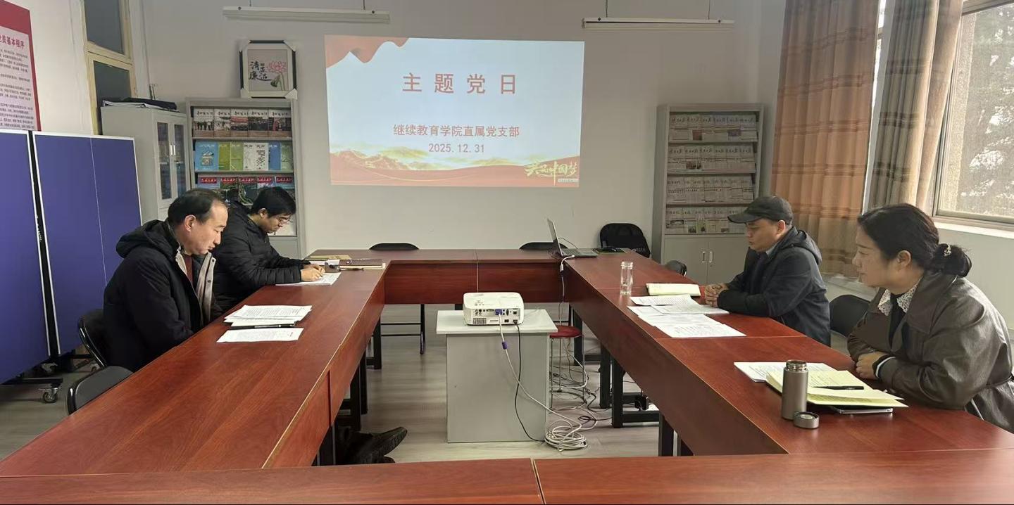 12月31日下午,继续教育学院直属党支部在党员活动室开展12月份主题党日活动,支部全体党员参加,活动由支部书记付军昌主持。