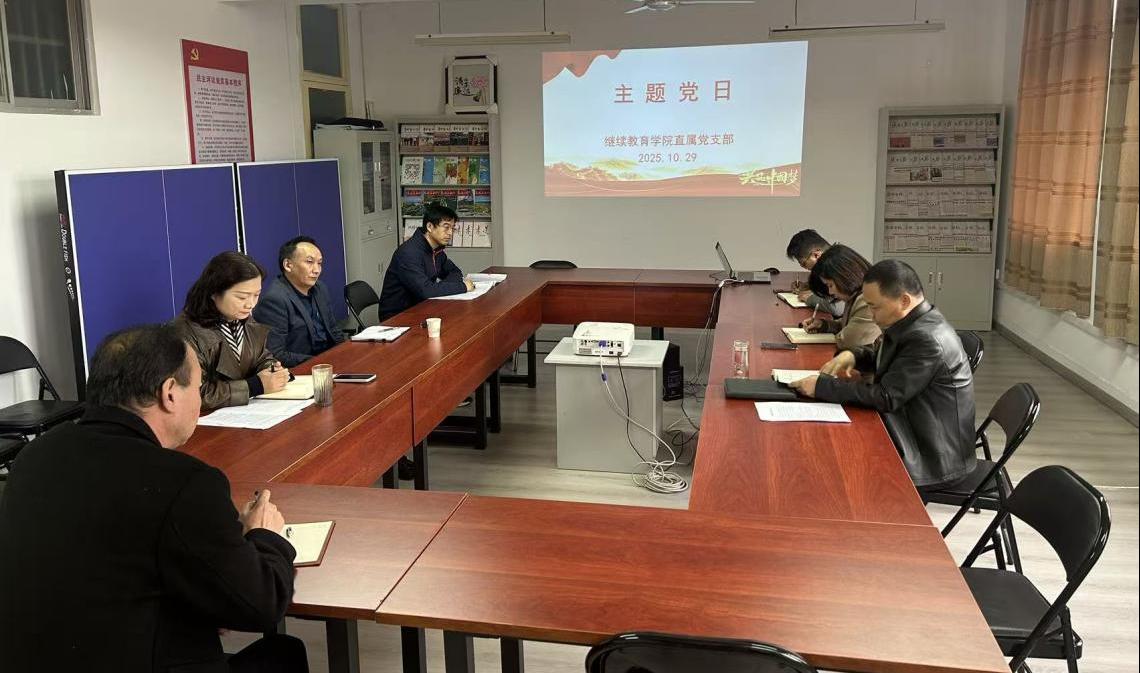 10月29日下午,继续教育学院直属党支部在党员活动室开展10月份主题党日活动,支部全体党员参加会议,党委第二巡察组组长张晓倩及相关成员列席会议。会议由支部书记付军昌主持。