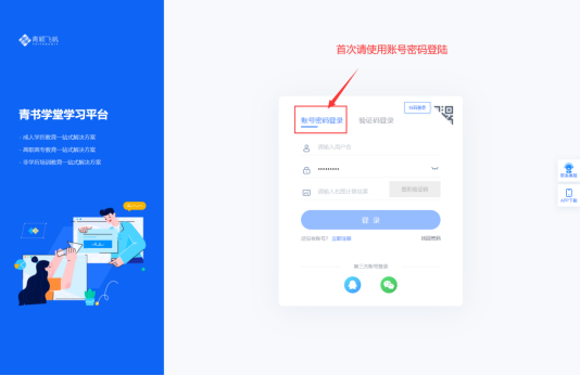 学生用户名为:本人学号,初始密码为:出生年月日(如19900110),(首次登录需使用账号密码登陆方式;绑定手机后的可用手机号+验证码方式登录);